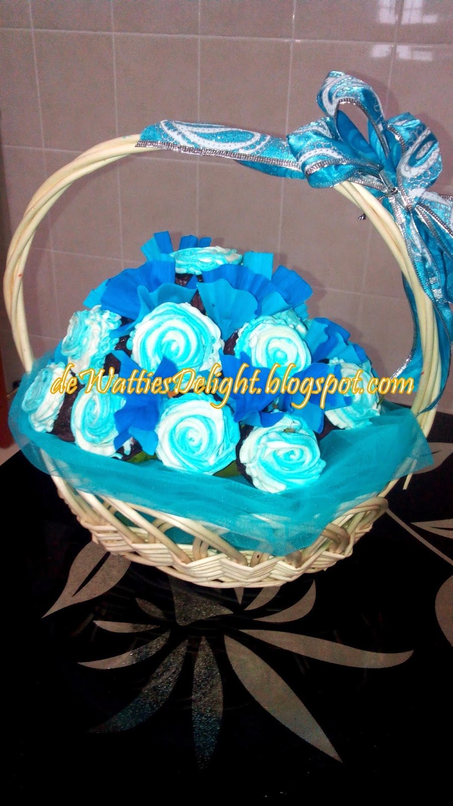 Warna tema, biru dan putih menjadi pilihan. Jadi, inilah hasilannya, nampak macam serba kekuranganla pulak huhuhu. Cupcake ni siap malam, nak post lebih lebih pun tak boleh sebab gambar semua jadi tak jelas sbb saya menggunakan handphone saja, tak puashati pula rasanya. Tapikan, alhamdulillah, feedback daripada kakak dan adik beradik yang lain tidak menghampakan saya, heheheh, lega rasa hati.